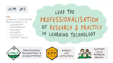 Building on the work of the Association that engages Learning Technology professionals from across sectors, Maren Deepwell's talk will focus on workforce development to maximise Learning Technology impact in three ways: first, setting out what questions we need to ask about skills and capabilities, second, exploring how and open online course can support workforce development and third by showcasing how ALT’s accreditation scheme, CMALT, can help increase intelligent use of Learning Technology.
