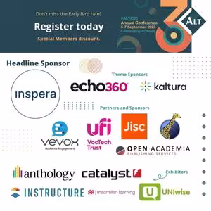 Keep up to date with what’s in store via the conference hashtag #ALTC23. Follow us on Twitter, LinkedIn and Mastodon.