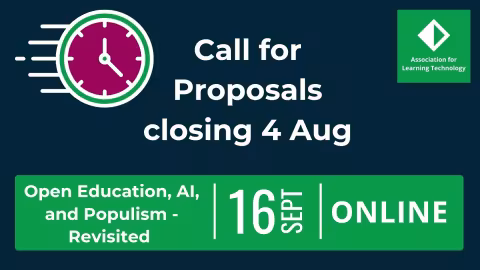 Last month, we had the pleasure of hosting an inspiring OER25 in London. We’re continuing the conversation with an online full day follow-up event, Open Education, AI, and Populism – Revisited, on Tuesday, 16 September 2025. This virtual event will build upon the themes and discussions from the Open Education Conference. We'd love for you to be part of it. Submit a proposal for a session by the extended deadline of 23:59, on Monday, 4 August.