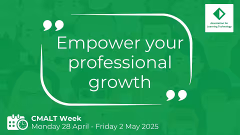 • Join our CMALT Q&A on BlueSky: Connect with fellow Learning Technology professionals on social media on Tuesday 29 April, from 12:00 PM to 12:30 PM. It’s your chance to ask questions, share experiences, and get advice directly from our Professional Development Manager.