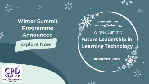 We are excited to present the programme for the ALT Winter Summit 2024, which is centred around the theme of “Future Leadership in Learning Technology”. This year, we've shaken up the format of our Winter Summit to create an interactive, collaborative event with plenty of opportunities for knowledge sharing and networking. Join us online for a full day of engaging sessions on Tuesday 10 December 2024, from 9:00 AM to 5:30 PM GMT.