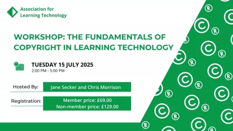 Led by experts Chris Morrison and Jane Secker, this interactive workshop will empower you with a strong grasp of UK copyright law and how it applies to digital learning. Expect engaging activities (yes, even a copyright card game) and valuable insights you can apply immediately to your practice.