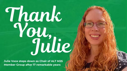 After an incredible 17-year journey, Julie Voce is stepping down from the committee of the ALT M25 Member Group, one of ALT’s longest-running Regional Member Groups.