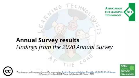 Results of the survey are openly published each year in spring. Both the ALT Annual Survey and anonymised survey responses are shared openly in the ALT Repository. You can also read news items and other pages related to the Annual Survey.