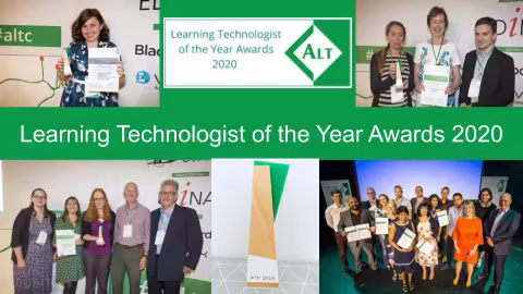 The ALT Learning Technologist of the Year Awards celebrate and reward excellent research and practice and outstanding achievement in Learning Technology. Established in 2007, the Awards have established a benchmark for outstanding achievement in Learning Technology on a national scale and attract competitive entries from the UK and internationally. All entries are reviewed by an independent judging panel chaired by the President of ALT.