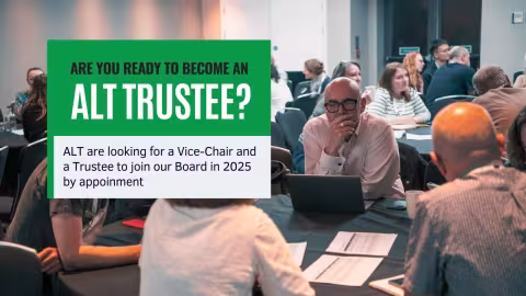 As this is a busy time of year for many colleagues, we are extending the deadline to submit Expressions of Interest for the roles of Vice-Chair or Trustee on ALT’s Board to Monday 3 November 2025 at 9:00 AM. We hope this additional time allows members to fully consider this exciting opportunity to contribute to ALT’s strategic leadership.