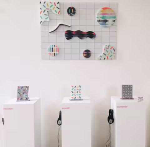 As in all things, this eureka moment came when she was cleaning out her tumble dryer – she saw the lint in the machine and began to experiment with process to see if she could use it somehow in her practice. Eventually, she came up with the idea of felting the lint, and this worked well, leading her on a local mission to launderettes and dry cleaners to take away their lint. This felted lint formed the heart of her Final Major project, where she re-imagines this ‘waste’ product and creates a resource; due to its acoustic properties can be used for sound absorption in a wide range of interiors spaces including home, office, restaurants & recording studios.