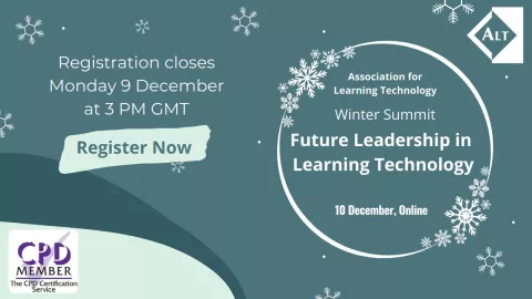 Don't miss the ALT Winter Summit 2024, on Tuesday 10 December 2024. This fully online event offers a unique opportunity to engage with sector leaders, gain valuable insights, and network with peers. With less than a week to go, we encourage you to reserve your space now. Registration closes Monday 9 December at 3.00 PM GMT.